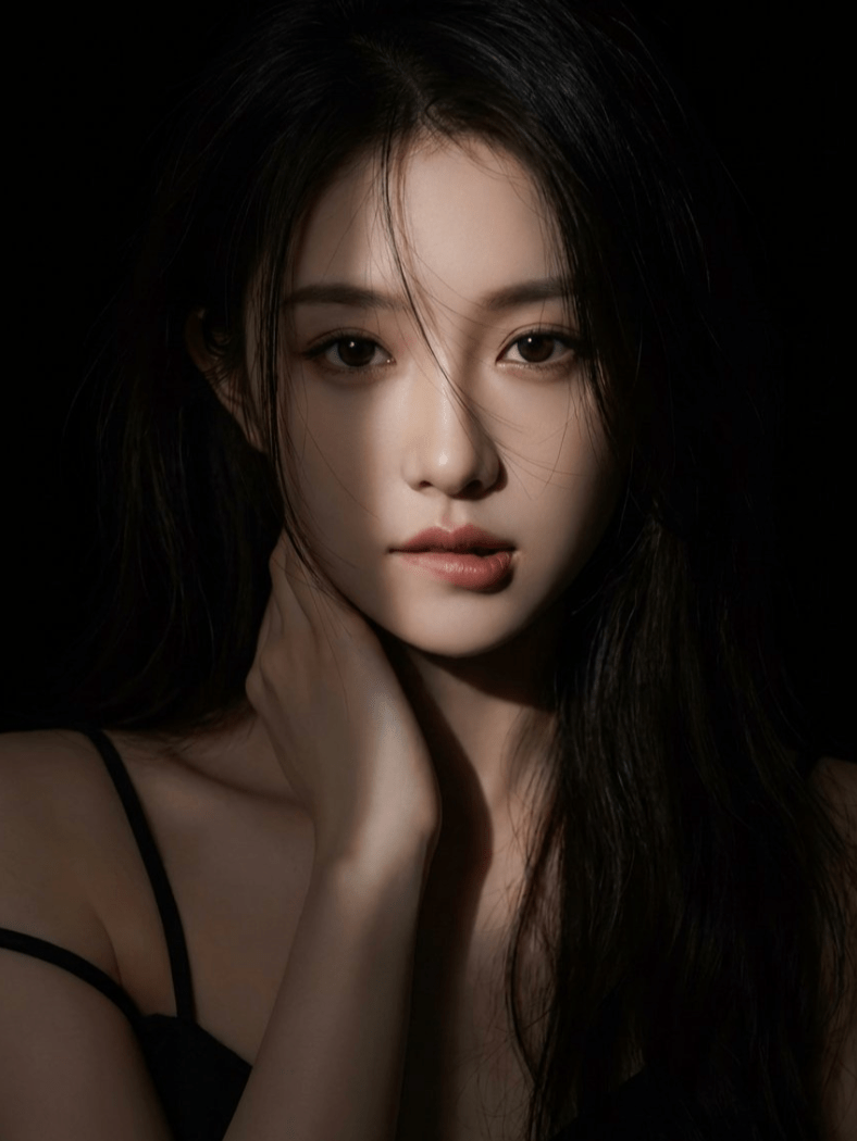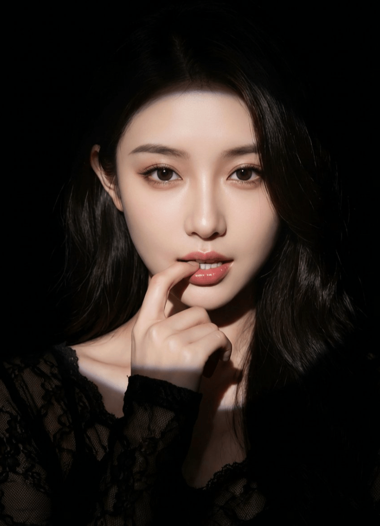 1. hyperrealistic female portrait of a female character standing in a completely black background. Lighting: use a narrow beam spotlight focused only on the center of the face and mouth. The edges of the light must be sharp and dramatic. All areas outside the spotlight should fall quickly into deep darkness (high falloff shadow), almost blending into the black background. Not soft lighting. Hair: long dark hair, messy strands falling over the face. The lower parts of the hair should fade into the shadows. Pose & Expression: She is gently and provocatively biting her lower lip, eyes staring intensely at the camera. One hand is reaching up to touch her neck. Clothing: A black spaghetti strap top; one strap has slipped down off her shoulder, but the clothing mostly disappears into the darkness with minimal detail. Overall tone: dark, moody, dramatic, mysterious, sexy. High-contrast only in the lit portion. 2. hyperrealistic female portrait of a female character standing in a completely black background. Lighting: use a narrow beam spotlight focused only on the center of the face. The edges of the light must be sharp and dramatic. All areas outside the spotlight should fall quickly into deep darkness (high falloff shadow), almost blending into the black background. Not soft lighting. Hair: long dark hair framing the face. Pose & Expression: She is looking at the camera with a sultry gaze and slightly sticking out her tongue in a playful, teasing manner. Clothing: Wearing a black deep-V lace top that is barely visible, merging into the shadows. Overall tone: dark, moody, dramatic, seductive. High-contrast only in the lit portion of the face. Everything outside the spotlight should be nearly invisible.